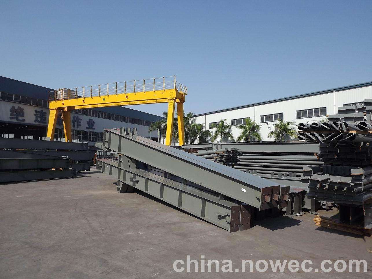 条状单元一般沿长跨方向分割,其宽度约为1~3个网格,其长度为l2或l2/2(l2为短跨跨距)。块状单元一般沿大庆网架平面纵横向分割成矩形或正方形单元。每个单元的重量以现有起重机能胜任为准。条(块)与条(块)之间可以直接拼装,也可空一网格在高空拼装。由于条(块)状单元是在地面拼装,因而高空作业量较高空散装法大为减少,拼装支架也减少很多,又能充分利用现有起重设备,故较经济。这种安装方法适用于分割后网架的钢度和受力状况改变较小的各类中小型网架,如两向正交正放四角锥、正放抽空四角锥等网架。